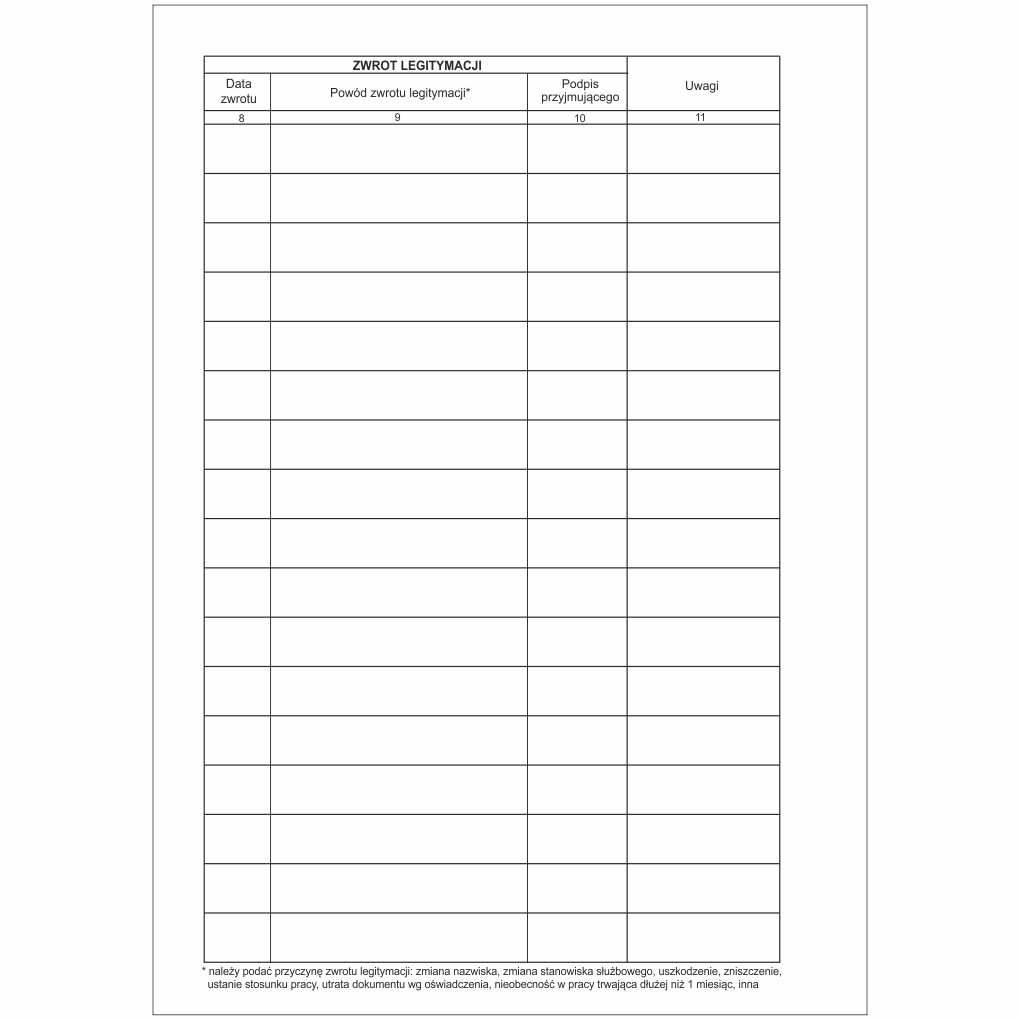 - Powód zwrotu legitymacji