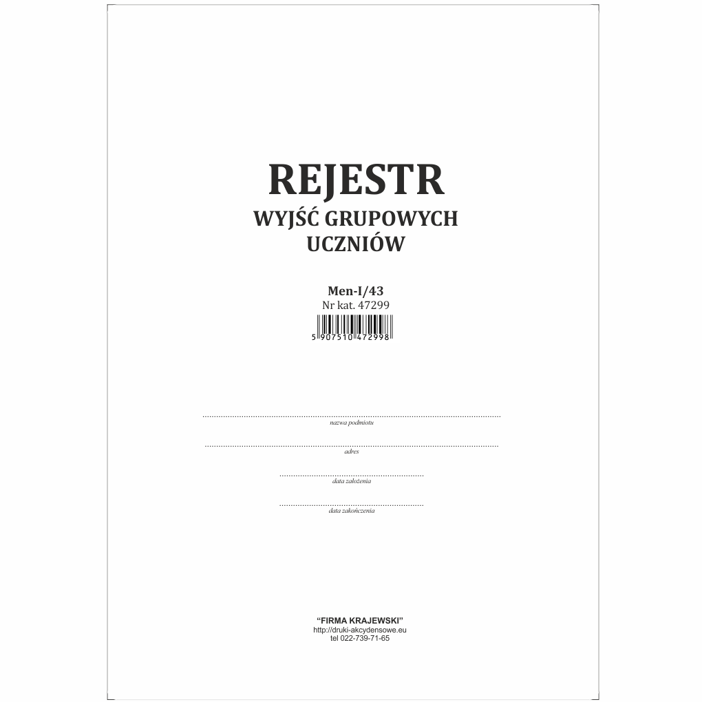 Rejestr wyjść grupowych uczniów [Men-I/43]