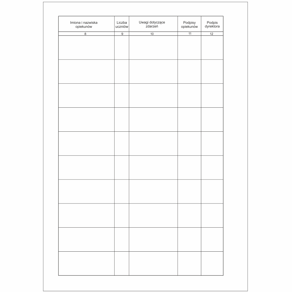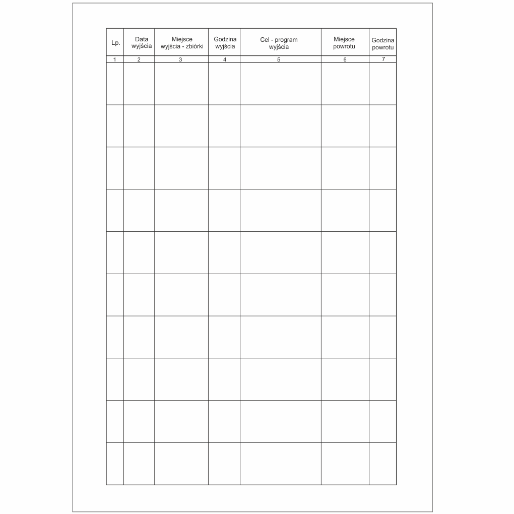 Księgę ma obowiązek prowadzić każda placówka edukacyjna. Ewidencjonuje się w niej wszystkie wyjścia grupowe uczniów. Wpisów dokonuje się chronologicznie według daty wyjścia.