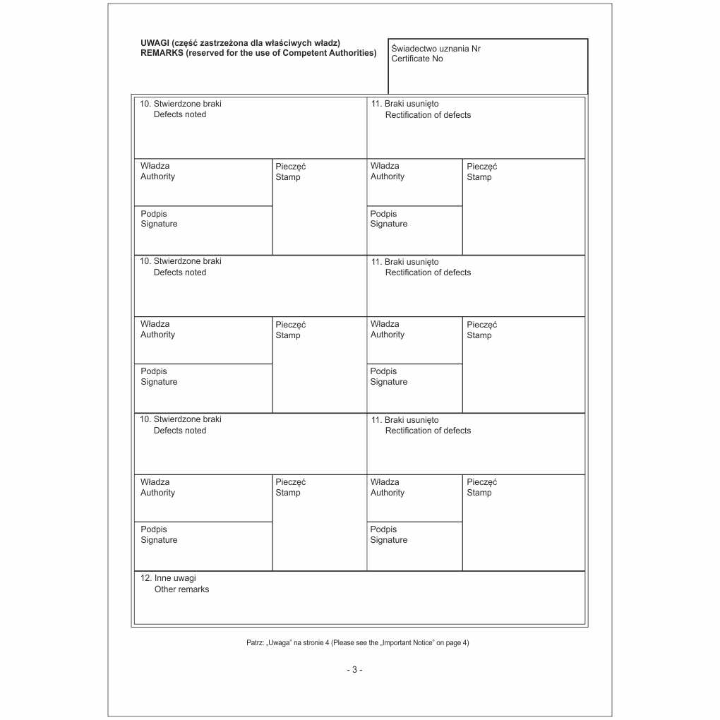 Świadectwo uznania pojazdu drogowego -wzór na 3 lata [Pu/Sm-130]