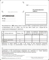 Przedmiotem tej transakcji jest druk Upomnienia 4-pozycyjnego stosowanego w postępowaniach egzekucyjnych. Druk samokopiujący, sklejony w blok o objętości 80 kartek.