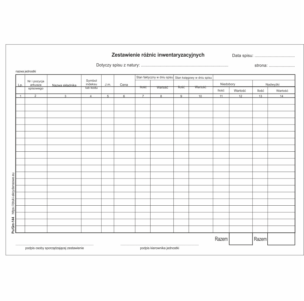 Zestawienie różnic inwentaryzacyjnych / wersja elektroniczna [Pu/Gm-144e]