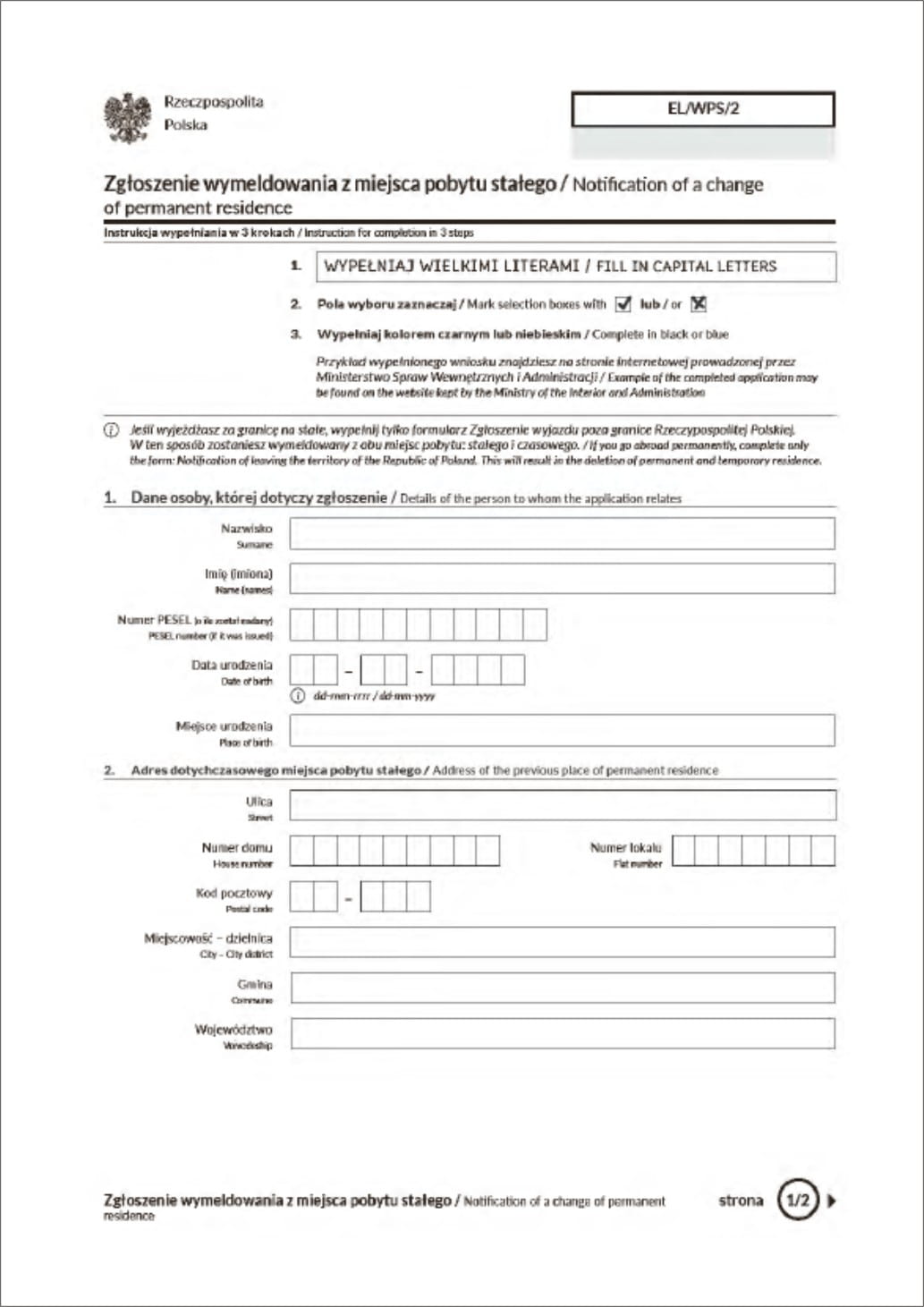 Zgłoszenie wymeldowania z miejsca pobytu stałego [EL/WPS/2] RYZA-500