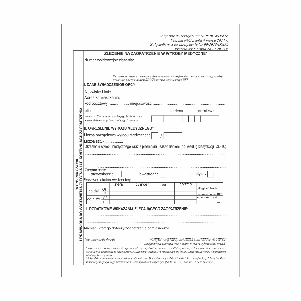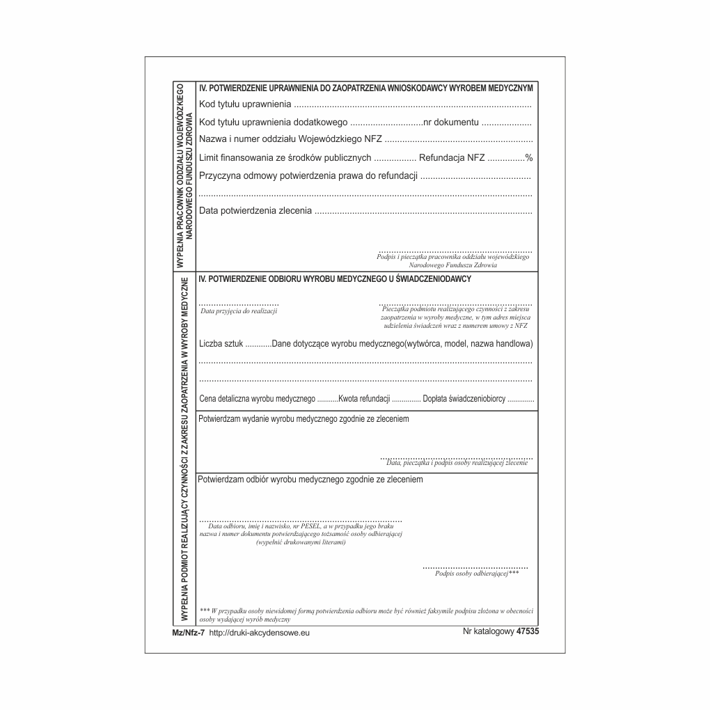 Zlecenie na zaopatrzenie w wyroby medyczne [Mz/Nfz-7]